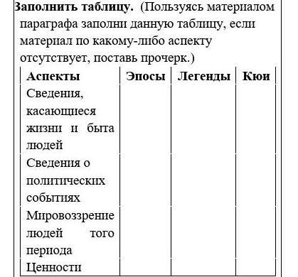 3. Заполнить таблицу. (Пользуясь материалом параграфа заполни данную таблицу, если материал по какому-либо аспекту отсутствует, поставь прочерк.)