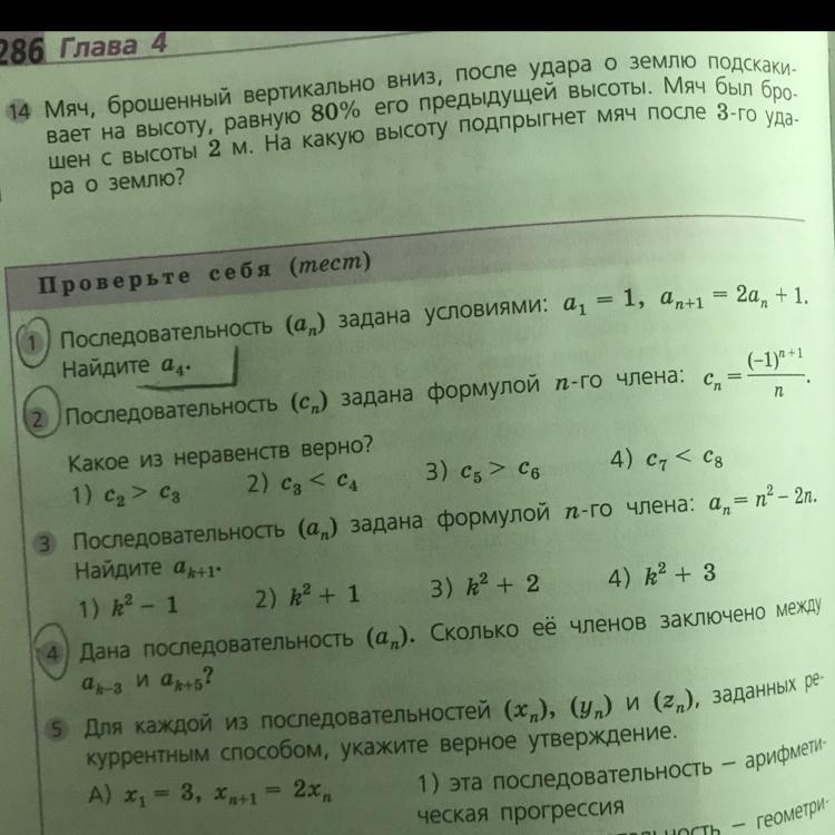 Последовательность ( an) задана условиями : a1 = 1 , an + 1 = 2an + 1 . Найдите a4.