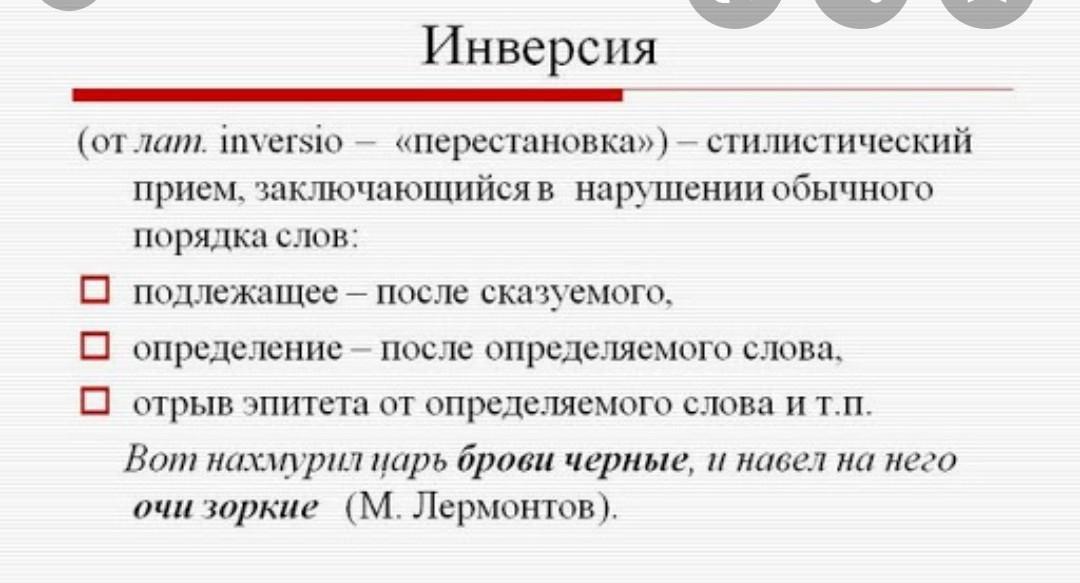 Инверсия – одно из средств выразительности речи, которое заключается в расположении слов, нарушающих привычный порядок. Сам термин произошел от латинского слова «inversio», что означает «переворачивание, перестановка».