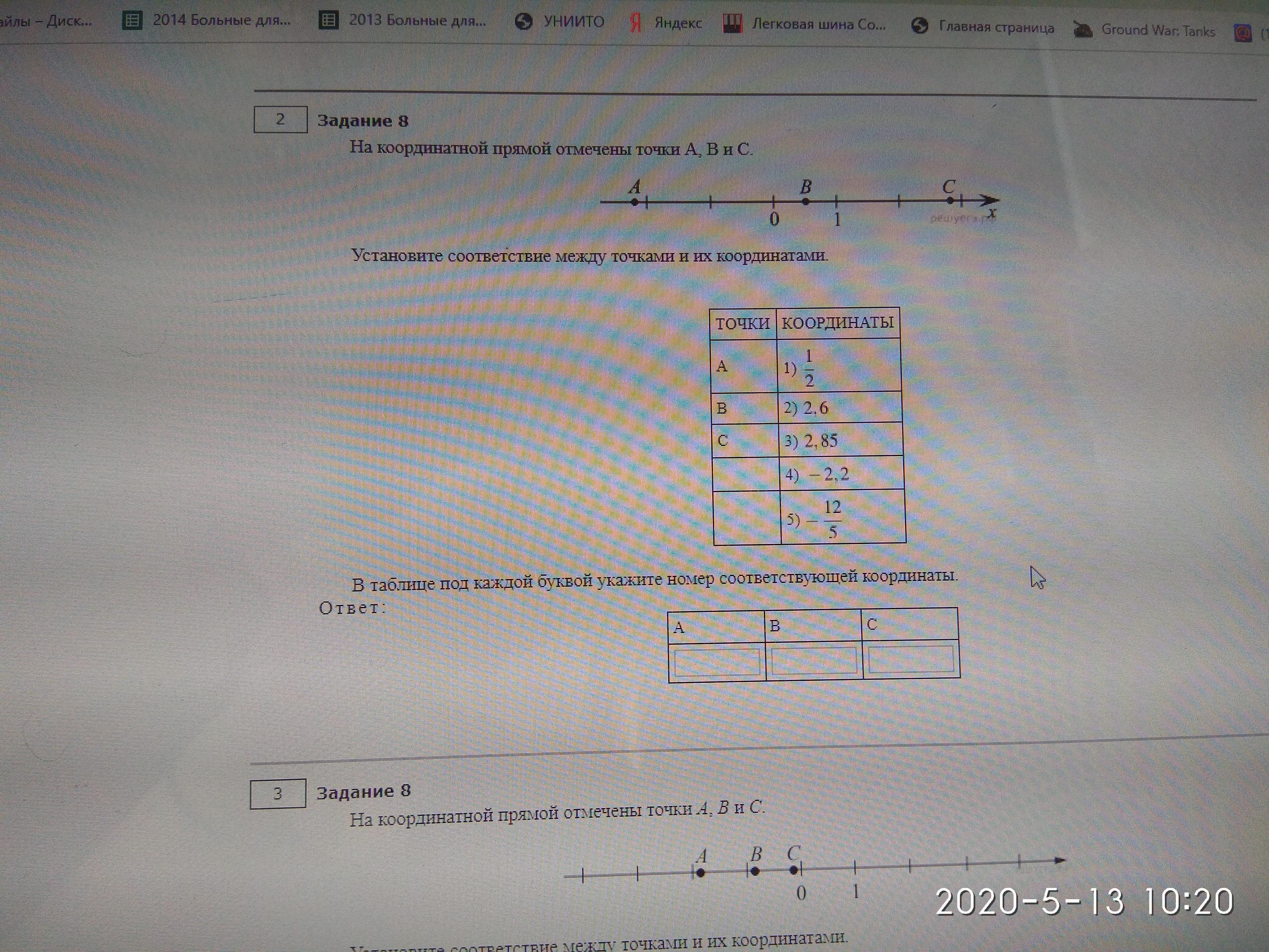 На координатной прямой отмечены точки A,B,C。установите соответствие между точками и их координатами, СРОЧНО!