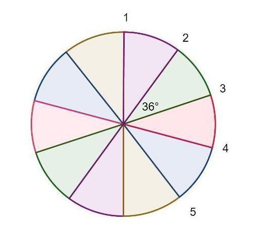5 диаметров делят круг на 10 секторов. Получится 10 кусочков пиццы.