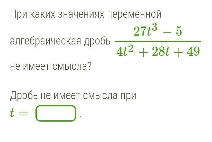 При каких значениях переменной алгебраическая дробь 27t3−54t2+28t+49