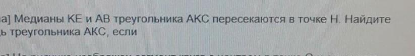 медианы КЕ и АВ треугольника АКС пересекаются в точке Н. Найдите площадь треугольника АКС, если