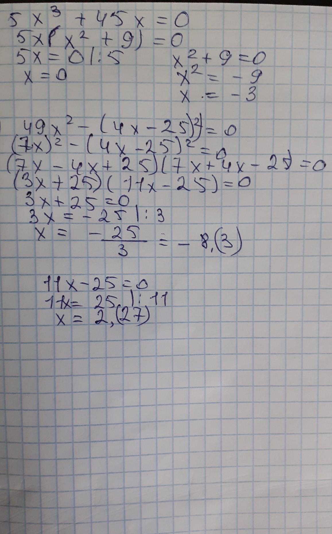 5х=0 или х^+9=0