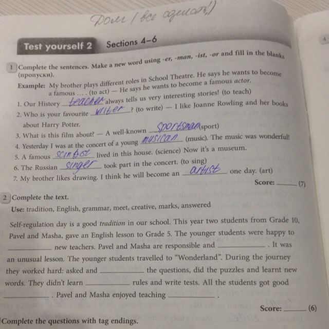 Use tradition, English , grammar, meet, creative, marks, answered
