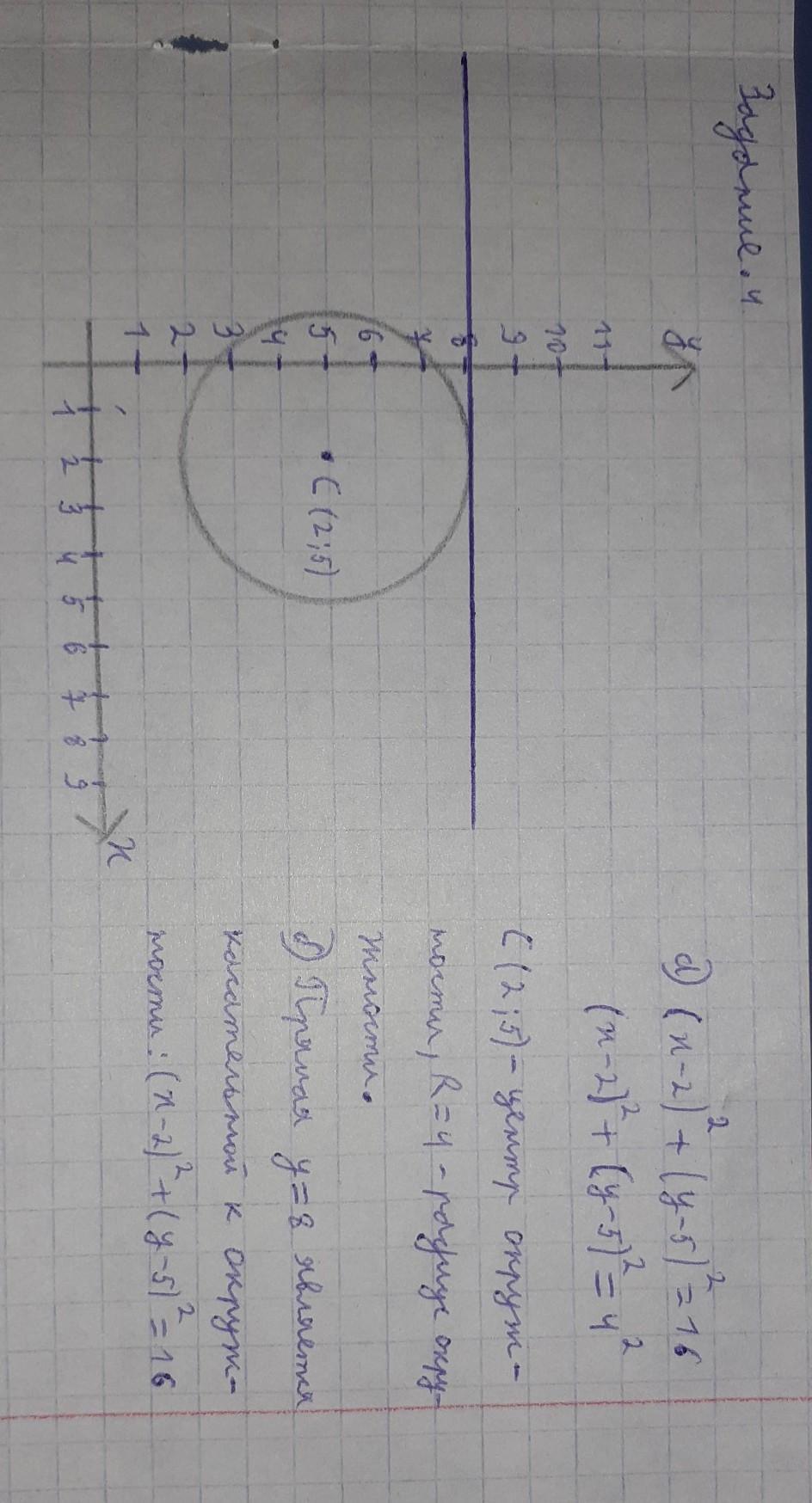 b)Определите взаимное расположение прямой y=8 и окружности(x −2)2 + (y −5)2 =16