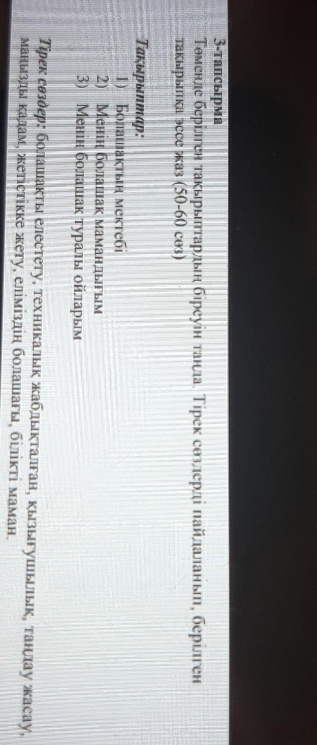 Менің қазіргі алға қойған мақсатым оқуымды үздік бітіру. Ол үшін адамда өзінің бойында осы мамандыққа деген сүйіспеншілігі мен өзіне деген сенім болуы қажет. Бұл мамандыққа жету екінің бірінің қолынан келмейтін іс. Сондықтан мен ешкім жетпеген жеңістіктерге жеткім келеді. Дәрігер болу үлкен мәртебе деп білемін. Мамандық таңдау үшін адам ең алдымен өзін, өз бейімділігін тануы қажет. Меніңше дәрігер болу менің қолымнан келеді. Ең бастысы – адам еңбекке қабілетті, зейінді болуы қажет және оның мамандығы өзі өскен ортаға маңызды, бағалы үлес қосатындай болуы шарт. Өз ісіне сенімді, дұрыс таңдаған адам ғана жетістікке жетеді. Адам еңбегінен қуанышын таба білсе, бойына жаңа күш қосылып еңбекке деген шабыты арта түседі. Зор ықылас, шабытпен істелген іс биігіне жеткізетін қанат.