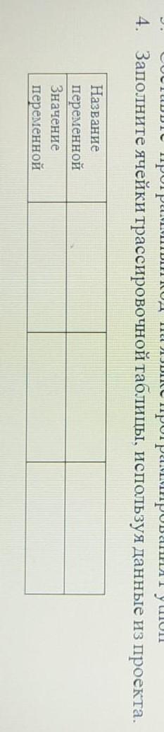 Заполните ячейки трассировочной таблицы. Используя данные из проекта