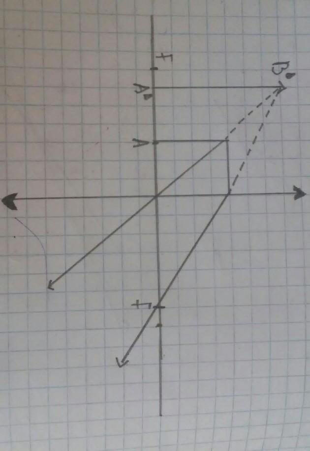 Построить изображение в рассеивающей линзе, если предмет находится между фокусом и линзой и если предмет расположен во втором фокусе.