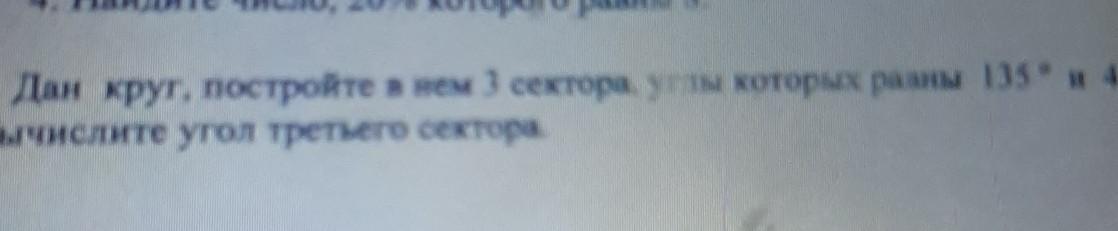 Дан круг постройте в нем 3 сектора углы которых равны 135° и 45° вычеслите гол 3 сектора