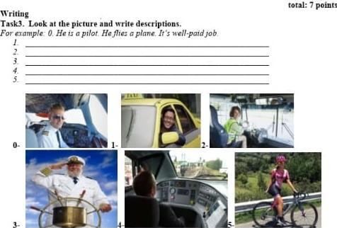 2.He’s cabbie. He drives a car. It’s got a good job 3. She’s a bus driver. She drives a bus. It’s bad work 3. He’s ship’s captain 4.-(не понятно кто это)5. She's a cyclist. She likes to ride a bike.