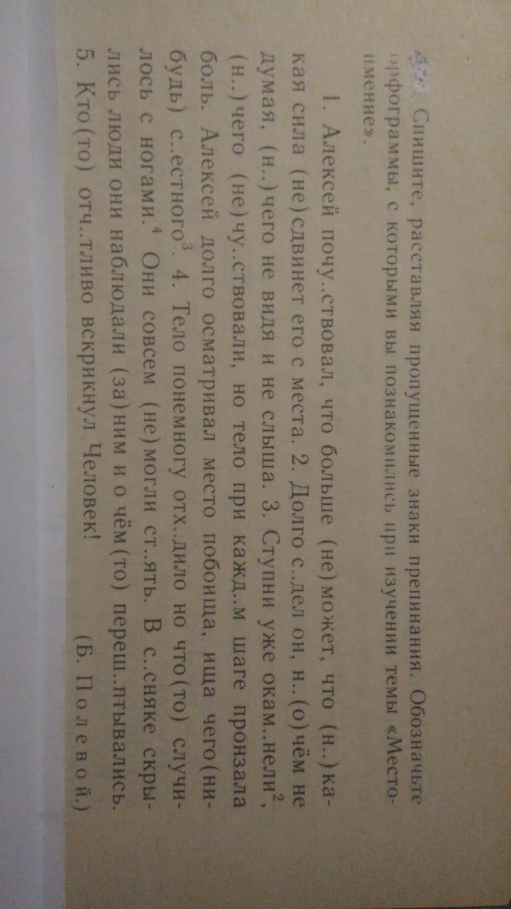 Ответ:Алексей почувствовал что больше не может, что ни какая сила не сдвинет его с места долго сидел он, не о чём не думая ничего не видя и не слыша. Ступни уже окаменели ни чего не чувствовали но тело при каждом шаге пронзала боль