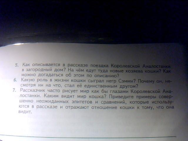 не сильно видно, но на 6 вопрос №1 ответ: Негр Сэмми стал единственным другом кошки, т.к. он тоже был одинок. Негр очень обрадовался кошке, стал ее кормить, заботиться о ней и всем говорил, что она его кошка.