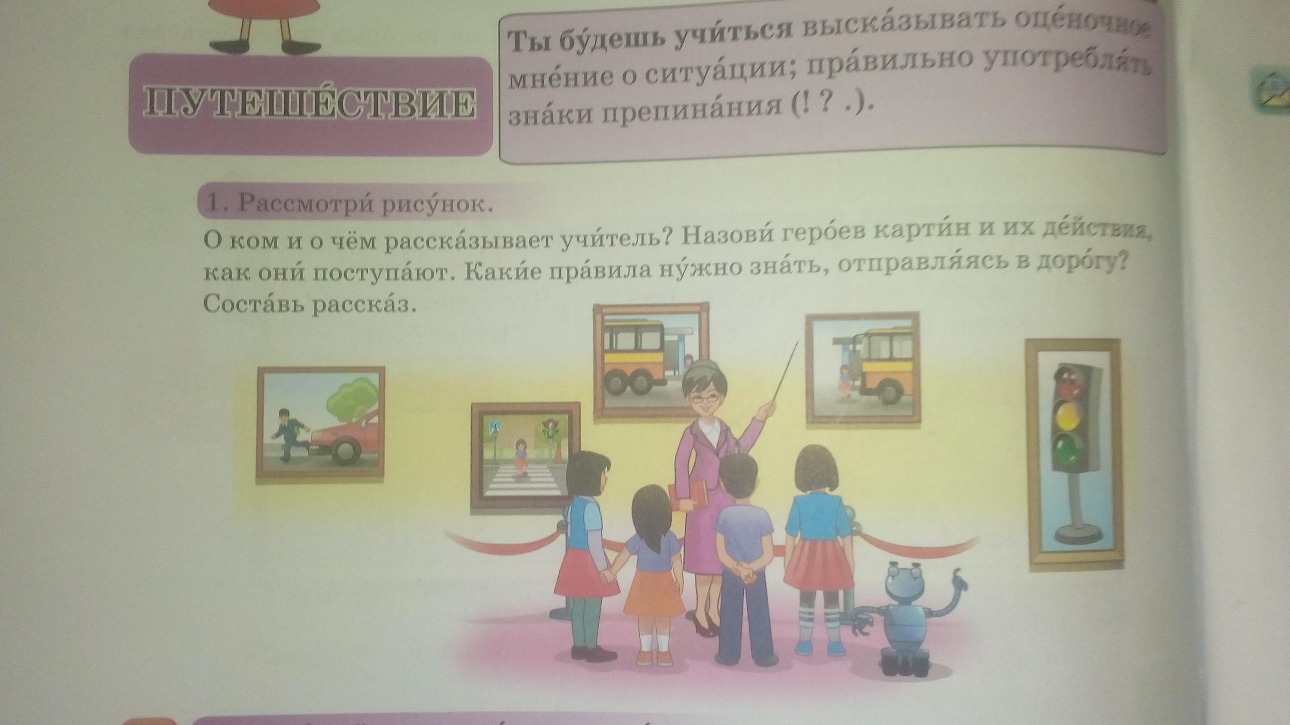 1.он рассказывает о ПДД . 2.на первой картине школьник перебегает дорогу возле машины видимо(я не знаю) , девочка переходит пешеходный переход , стой блинннн рассказ....-_- извини