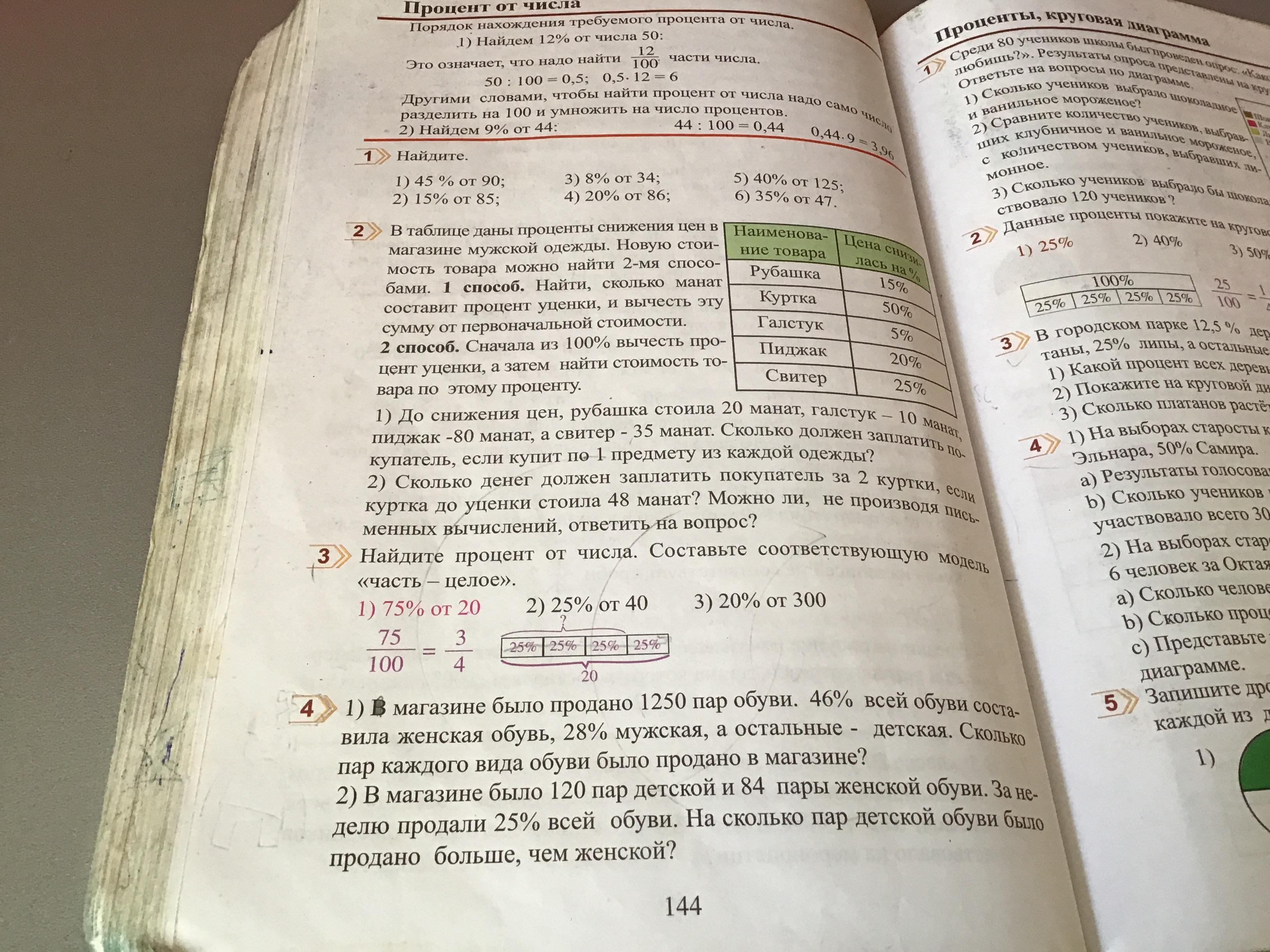Найдите процент от числа составьте соответствующую модель часть целое 25 % от сороко 20 % от 300 Номер 3,4