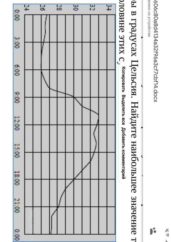 №6. На рисунке показано, как изменялась температура воздуха на протяжении одних суток. По горизонтали указано время суток, по вертикали — значение температуры в градусах Цельсия. Найдите наибольшее значение температуры в первой половине этих суток.
