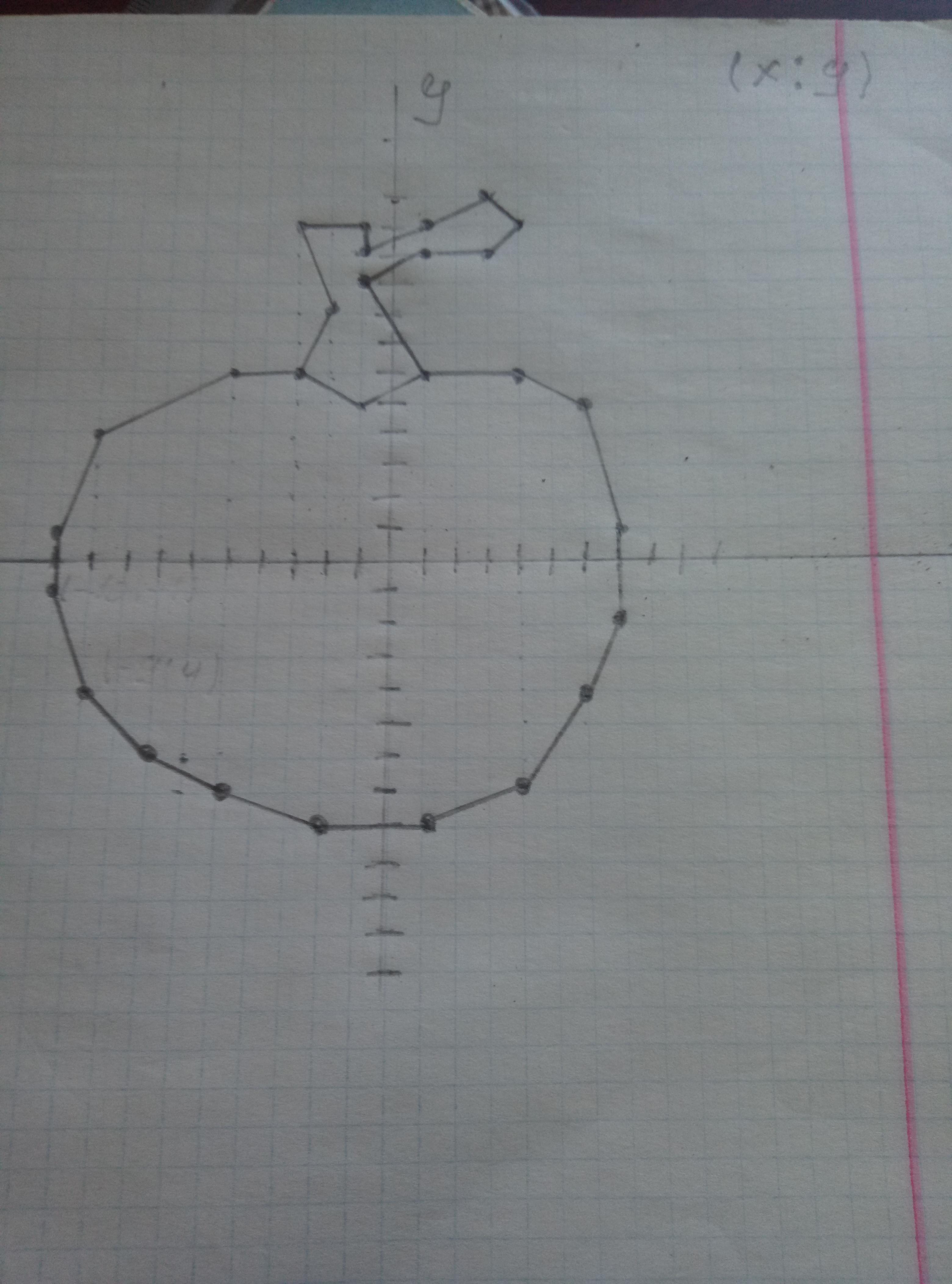 Часть 1: (-9,- 4), (-10,-1), (-10.1), (-9,4), (-5,6), (-3,6), (-1,5), (1,6). (4.6). (6.5), (7.1), (7-2), (6, -4), (4-7), (1.-8), (-2-8).