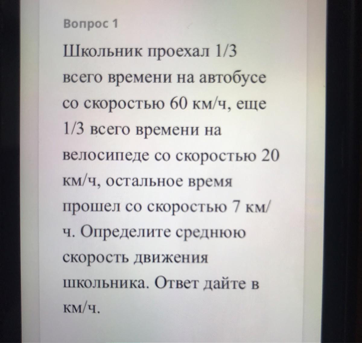 Тогда υcp=s1+s2+s3t1+t2+t3=υ1⋅t1+υ2⋅t2+υ3⋅t3t1+t2+t3=υ1⋅t1+υ2⋅t1+υ3⋅t1t1+t1+t1=υ1+υ2+υ33 ; υср = 29 км/ч.