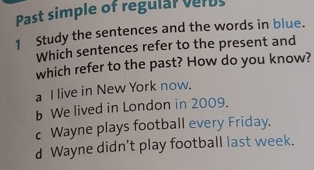 study the sentences and the words in blue.Which sentences refer to the present and which refer to the past?How do you know