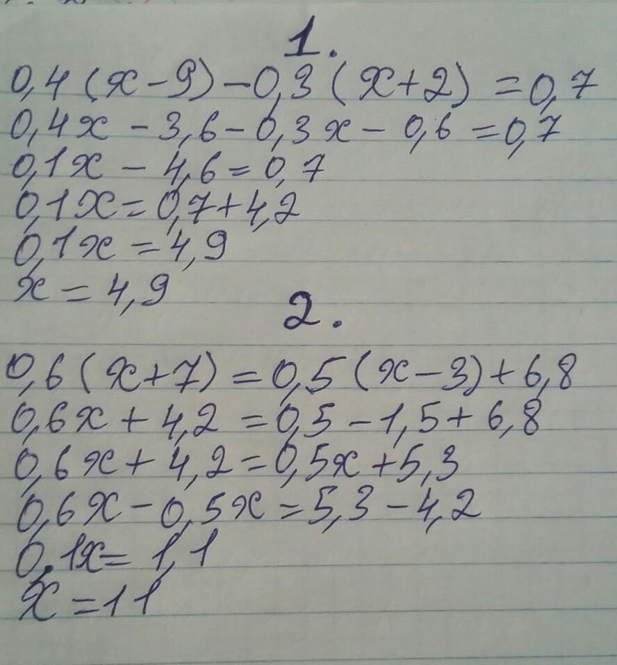 0,6х +4,2 = 0,5х - 1,5 + 6,8