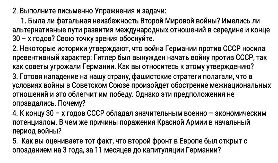 Пожалуйста ответьте на вопросы по истории о Второй мировой и Великой Отечественной войне