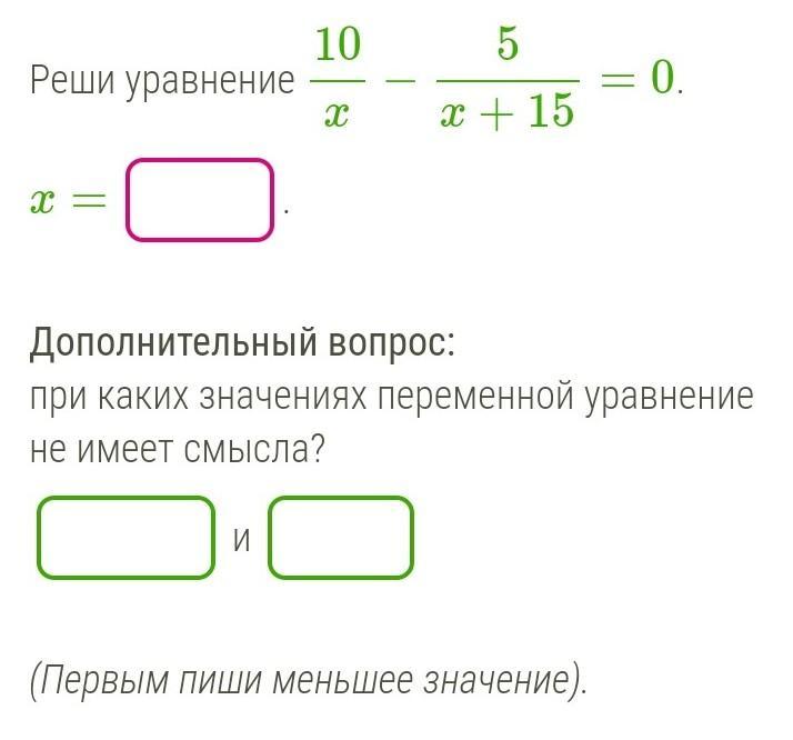 так как на 0 делить нельзя, и если мы в первое уравнение поставим 0 оно не будет иметь значение, а во второе уравнение мы можем ставить любое число кроме -15, так как -15+15 = 0 и уравнение не будет иметь значения