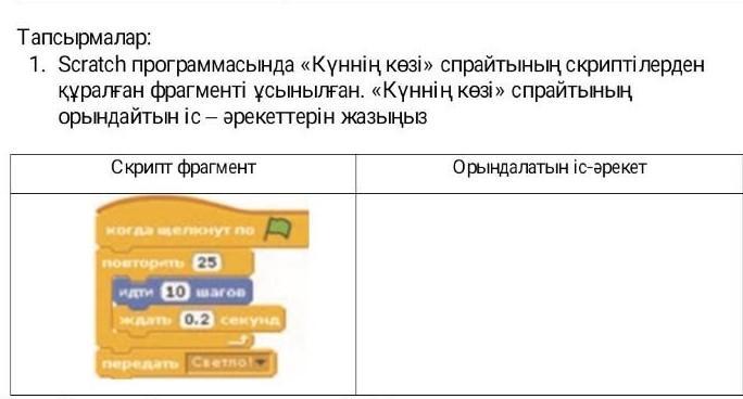 1. Scratch программасында «Күннің көзі» спрайтының скриптiлерден