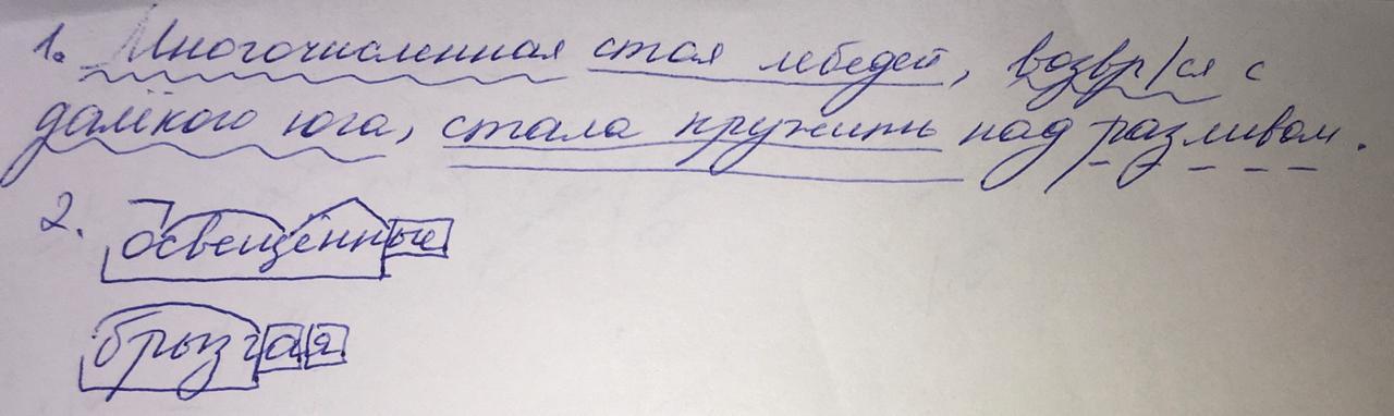 лебедей возвр…тившихся с д…лёкого юга стала кружит… над ра(з,с)ливом. Я видел