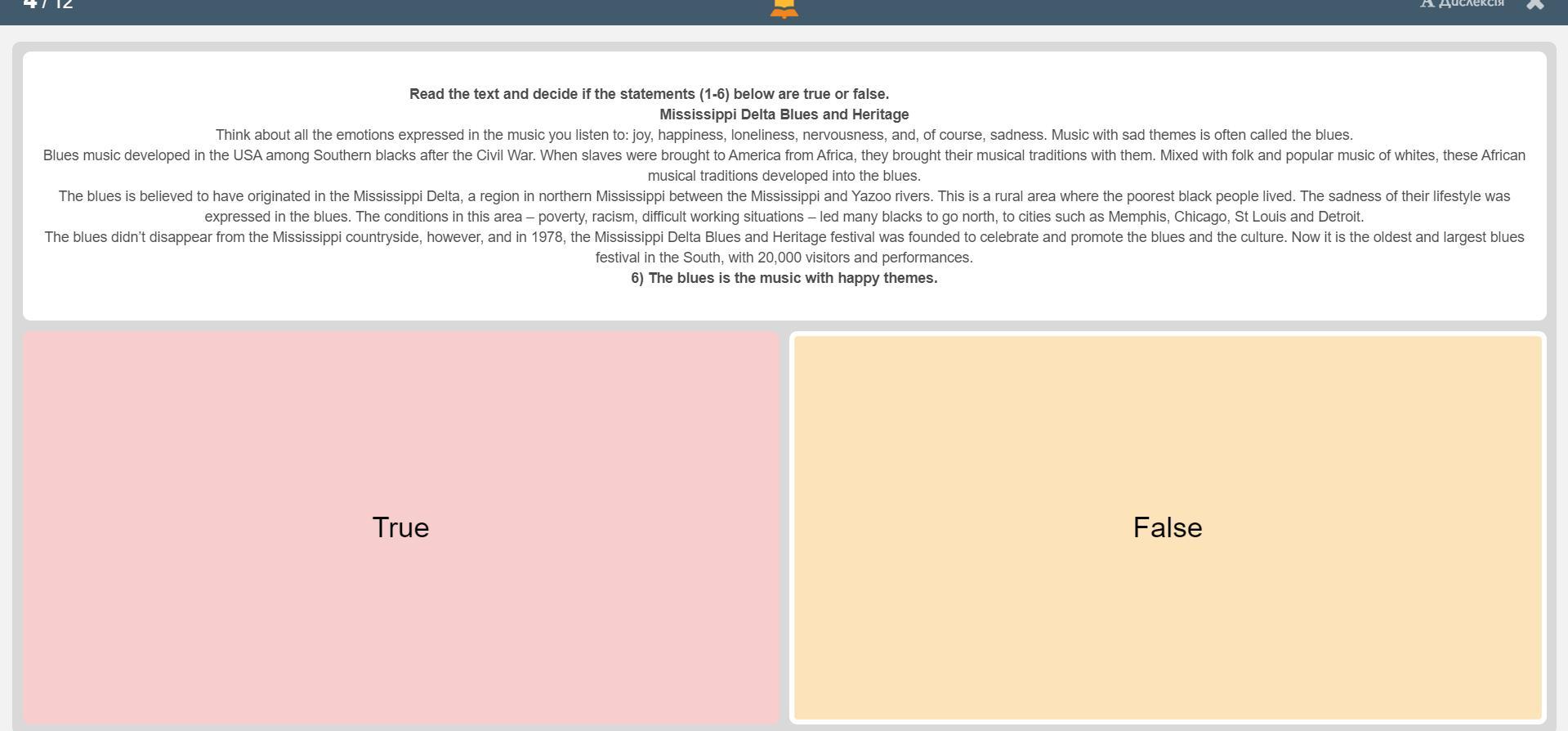 Прочитайте текст и решите, являются ли приведенные ниже утверждения (1-6) истинными или ложными.