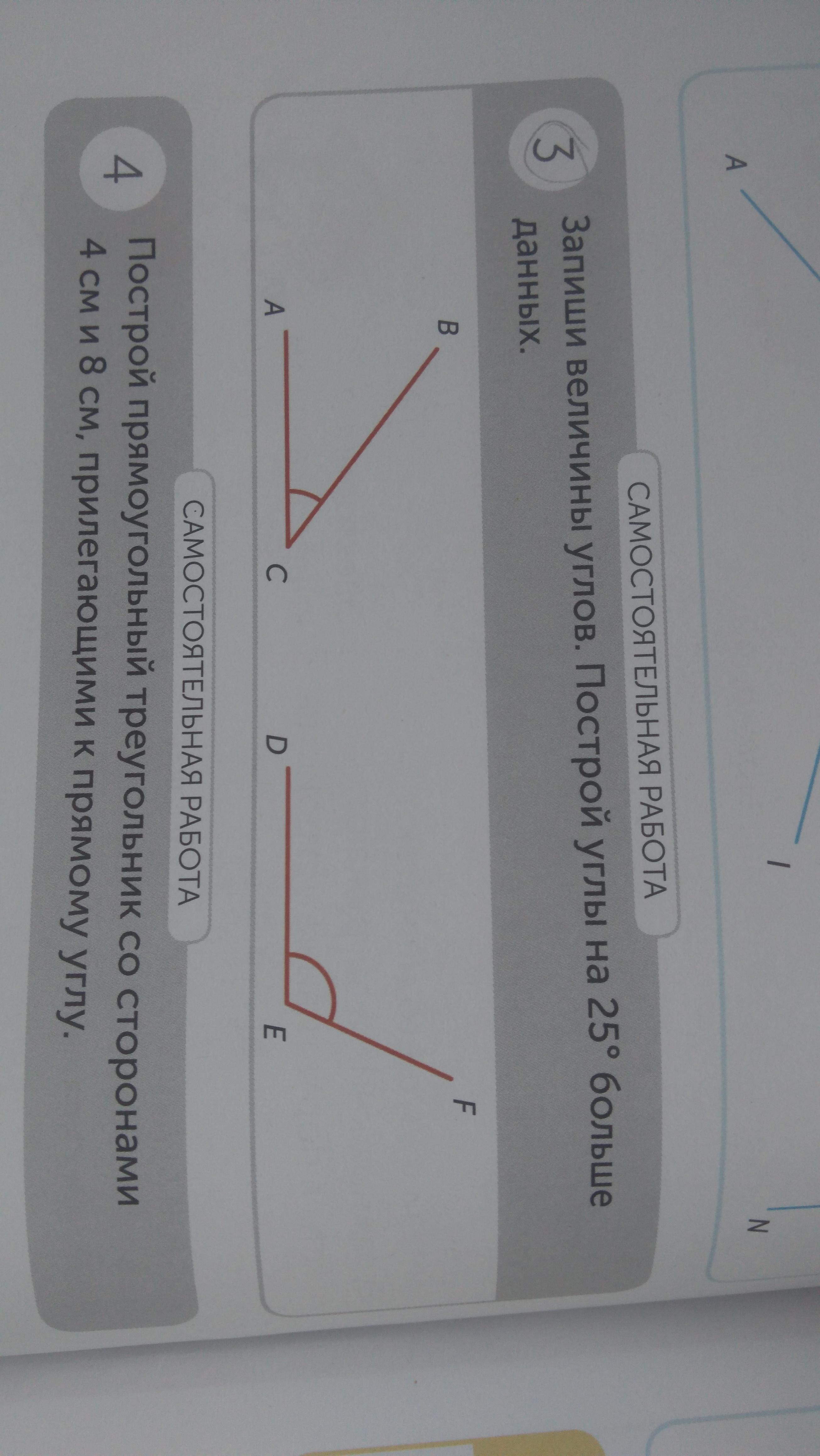 нужно воспользоваться транспортиром, и позже вычислить градусную меру угла и прибавить 25 градусов, помочь с рисунком не могу, потому что через устройство невозможно вычислить даже транспортиром