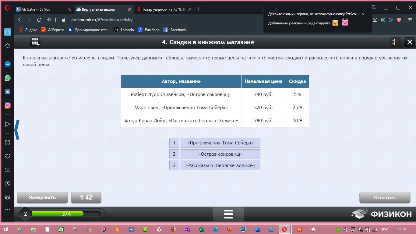 320 - 320 * 25 : 100 = 240 руб - новая сена на "Приключения Томаса Сойера"