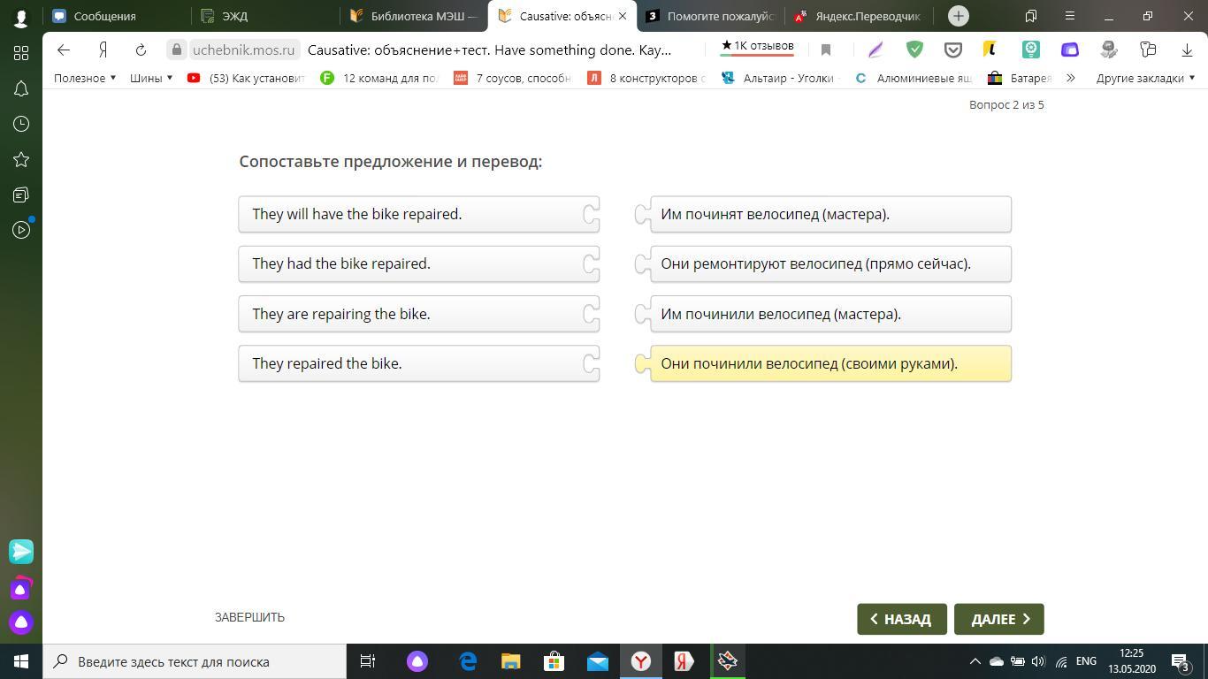 They are the repairing the bike- они ремонтируют велосипед(прямо сейчас)