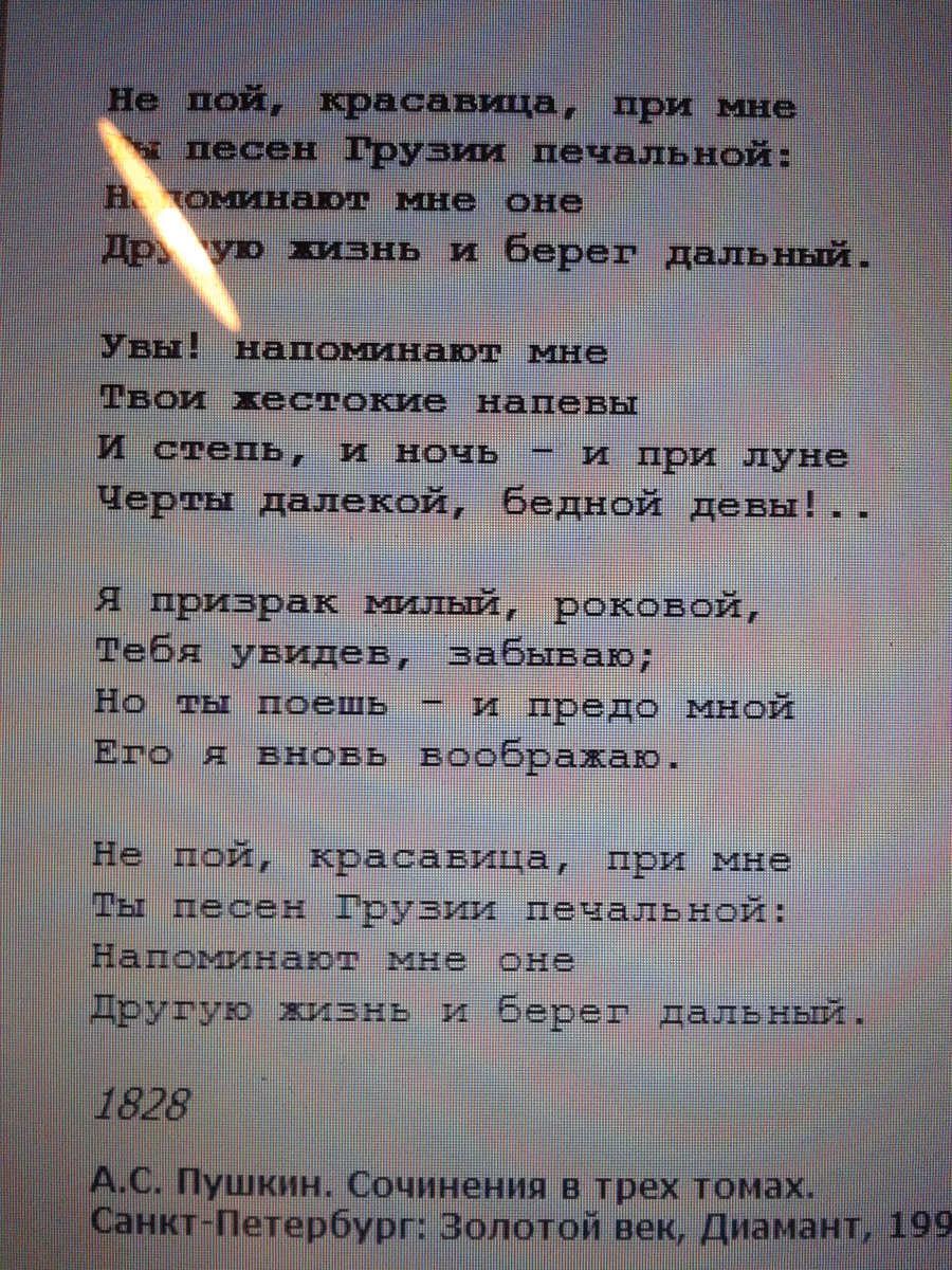 Стихи Пушкина "не пой красавица при мне" и "я помню чудное мгновение" Выписать тропы!! Это значит выписать эпитеты, метафоры, сравнения, олицетворения и т.п.