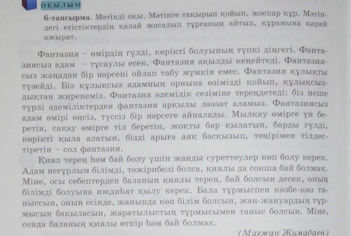 6-тапсырма. Мәтінді оқы. Мәтінге тақырып қойып, жоспар құр.