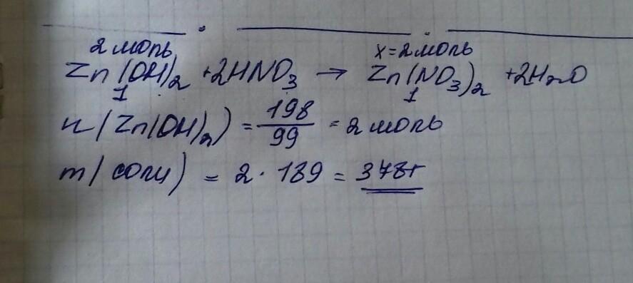 Цинк гидроксид массой 198 г растворили в азотной кислоте. Какая масса соли образовалась? Срочно! Пожалуйста!
