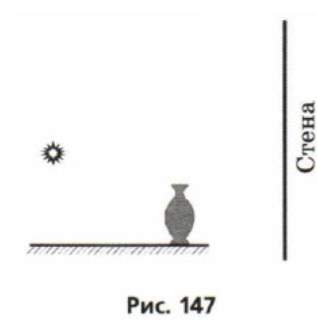 26.71. Ваза стоит на плоском зеркале . При включении точечного источника света на стене появляется двойная тень выазы . Объясните это явление с помощью построения.