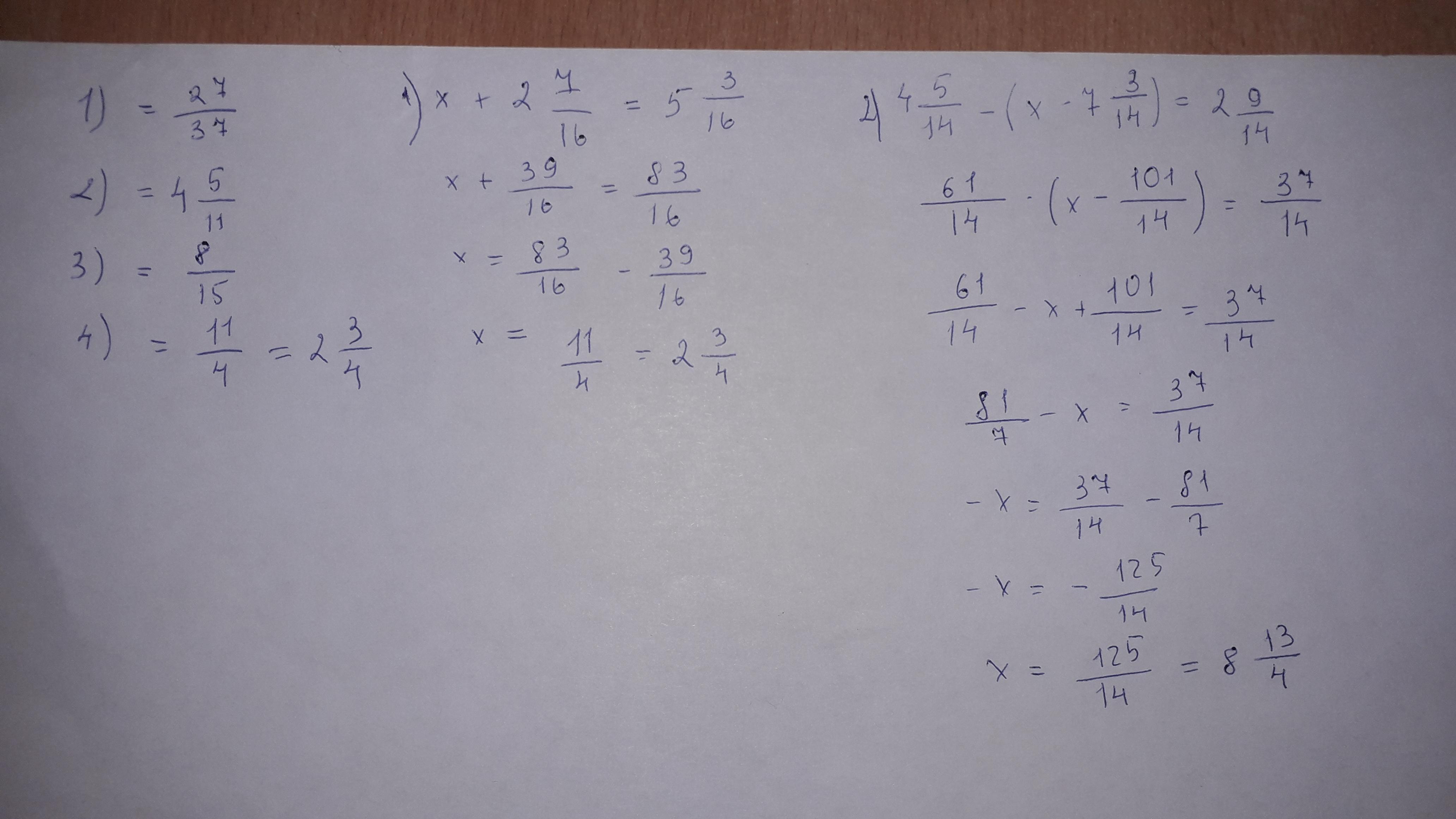 1) 27/37 2)4 5/11 3) 8/15 4) 2 2/8 1) 2 6/16 2) 1 6/14