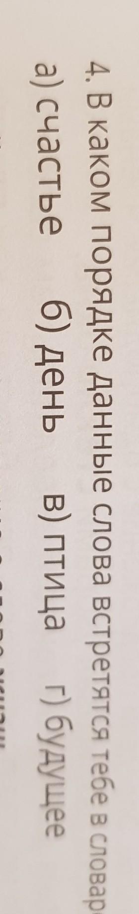 4. В каком порядке данные слова встретятся тебе в словаре?