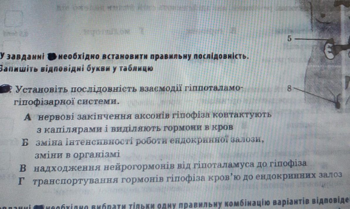 Установіть послідовність взаємодії гіпоталамо-гіпофізарної системи​