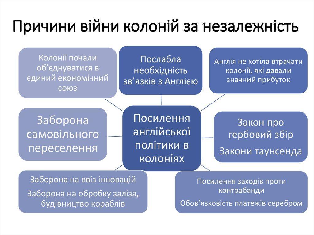 Назвіть три найголовніші причини, чому почалася війна за незалежність? Вкажіть дати її проведення.