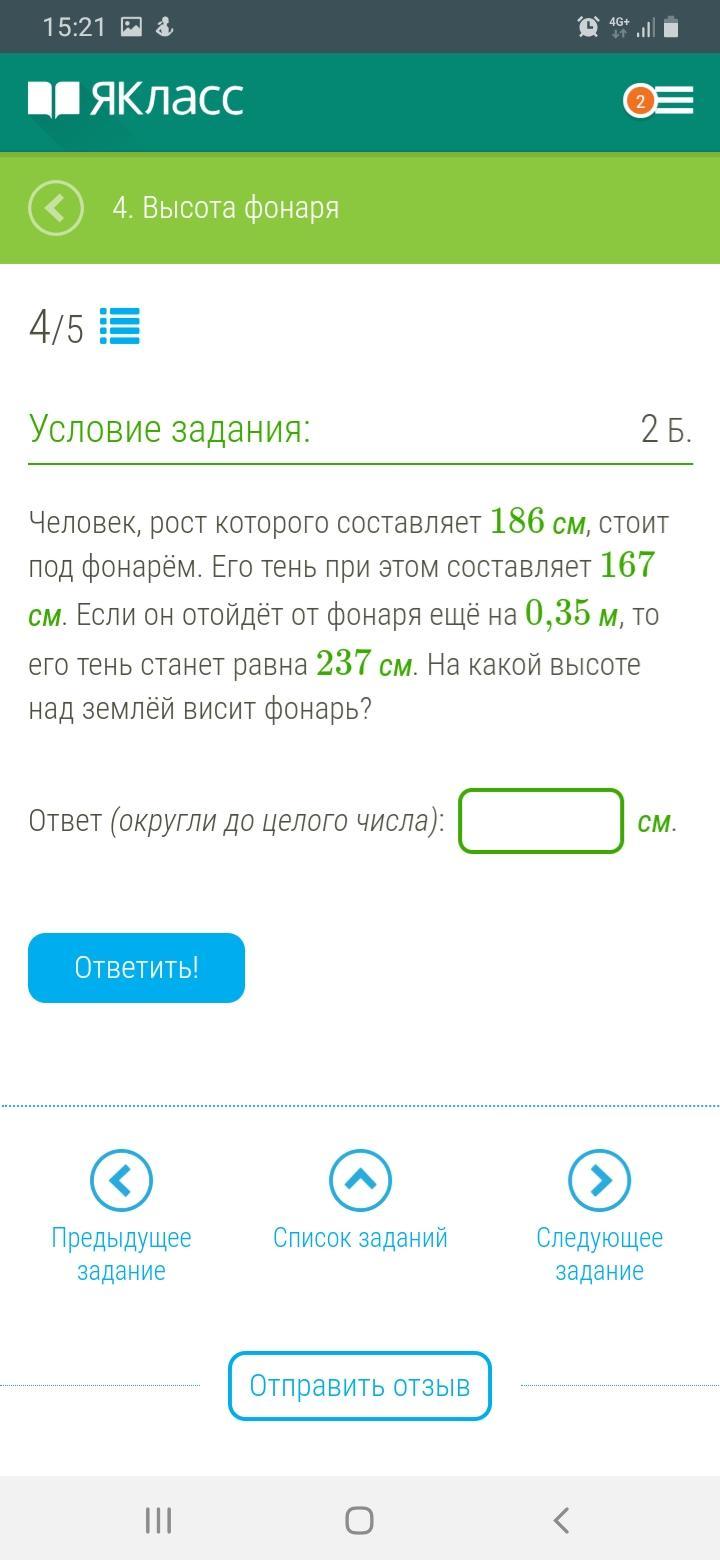 Высота человека 186 см. Первоначальная длина тени человека 167 см.
