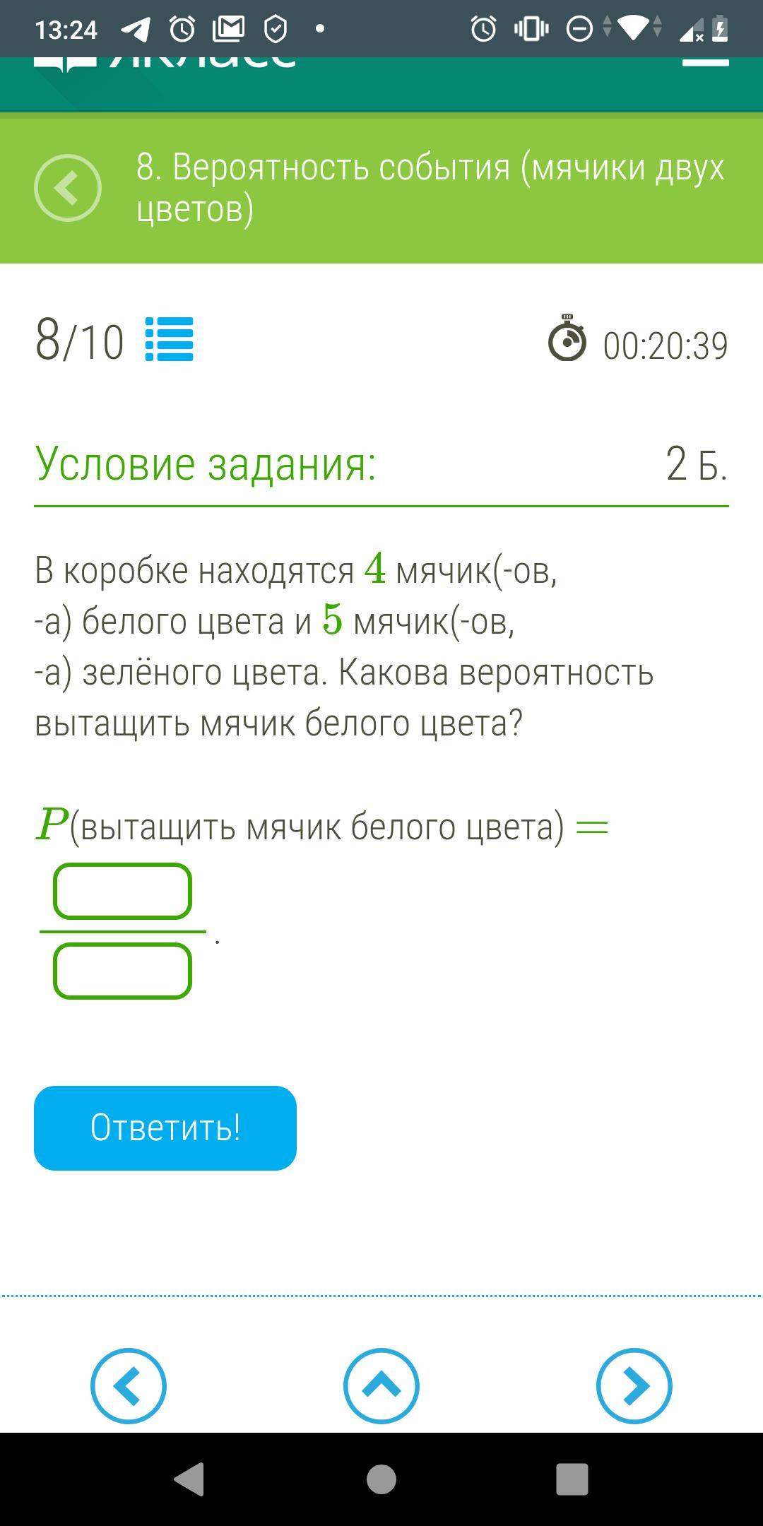 Потом мы делим количество белых мячиков на общее количество мячиков