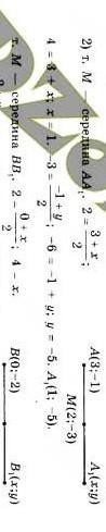 Если точка М(2;-3)-середина отрезка, то для нахождения второго конца отрезка при известном первом В(0;-2)конце надо от удвоенных координат середины отрезка отнять координаты второго конца.