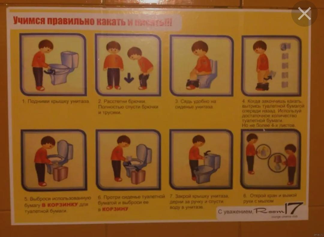 после посещение туалета, нужно помыть руки