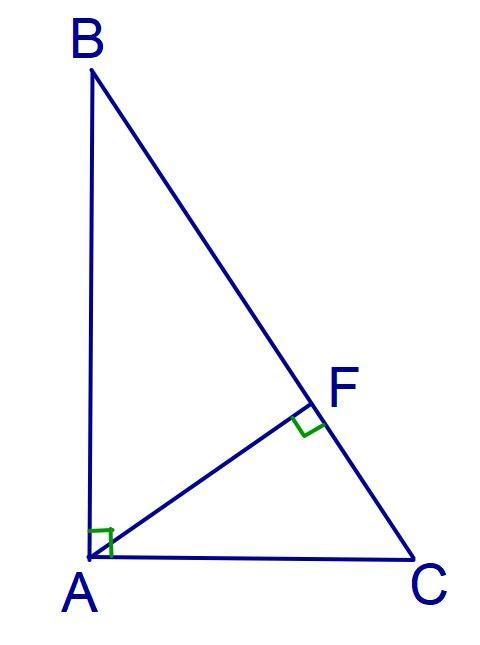 Ответ: подобные треугольники: BFA, BAC и AFC, подобны по общей стороне АС(AF)и прямому углу и общему углу В