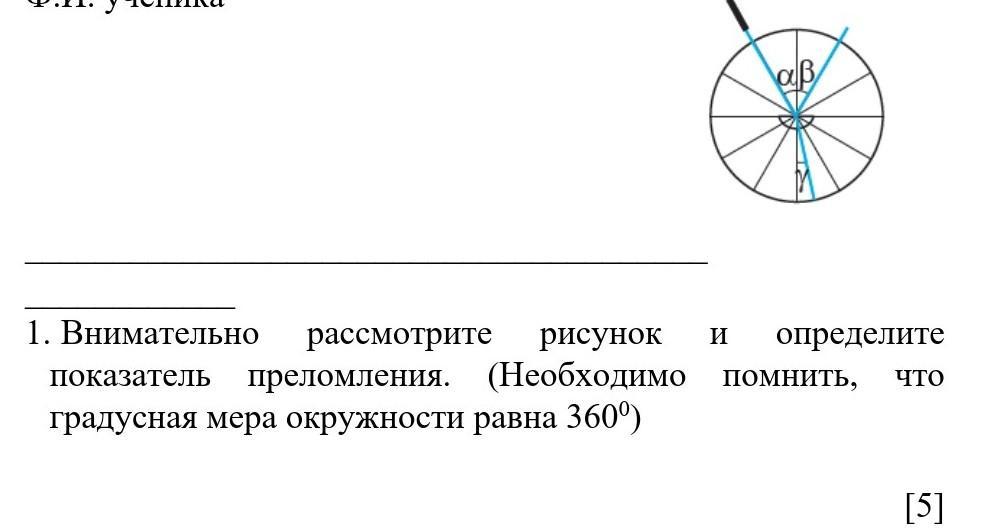 1. Внимательно рассмотрите рисунок и определите показатель преломления. (Необходимо помнить, что градусная мера окружности равна 360°)