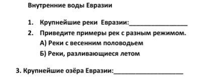 1. Крупнейшие реки Евразии: Янцзы, Хуанхэ, Меконг, Инд, Лена, Обь, Енисей, Волга. Реки неравномерно распределены по территории материка. Самые крупные речные системы находятся в Северной, Восточной и Юго-Восточной Азии.