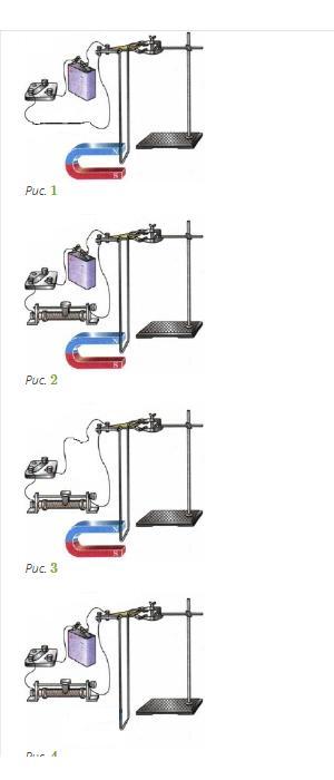 Ответ: проводник придёт в движение при замыкании ключа в цепях, изображённых на рисунках (Укажи верные ответы через запятую.)