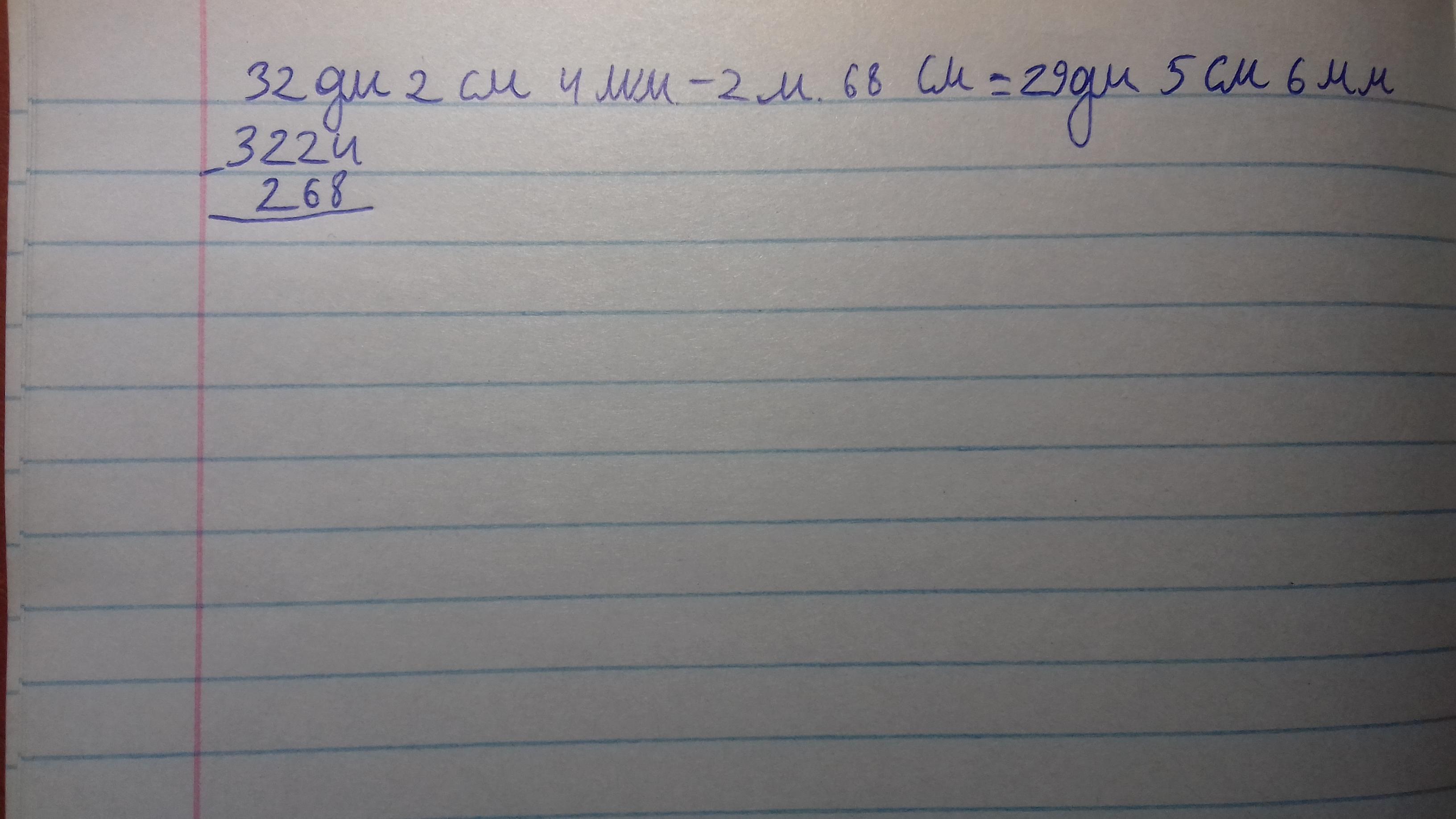 32 дм 2 см 4 мм - 2 м 68 см=5.44 дм