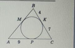 в треугольнике АВС вписана окружность, касающая его стороны в точках М, К и Р. Используя данные указанны на рисунке, найдите сторону АВ